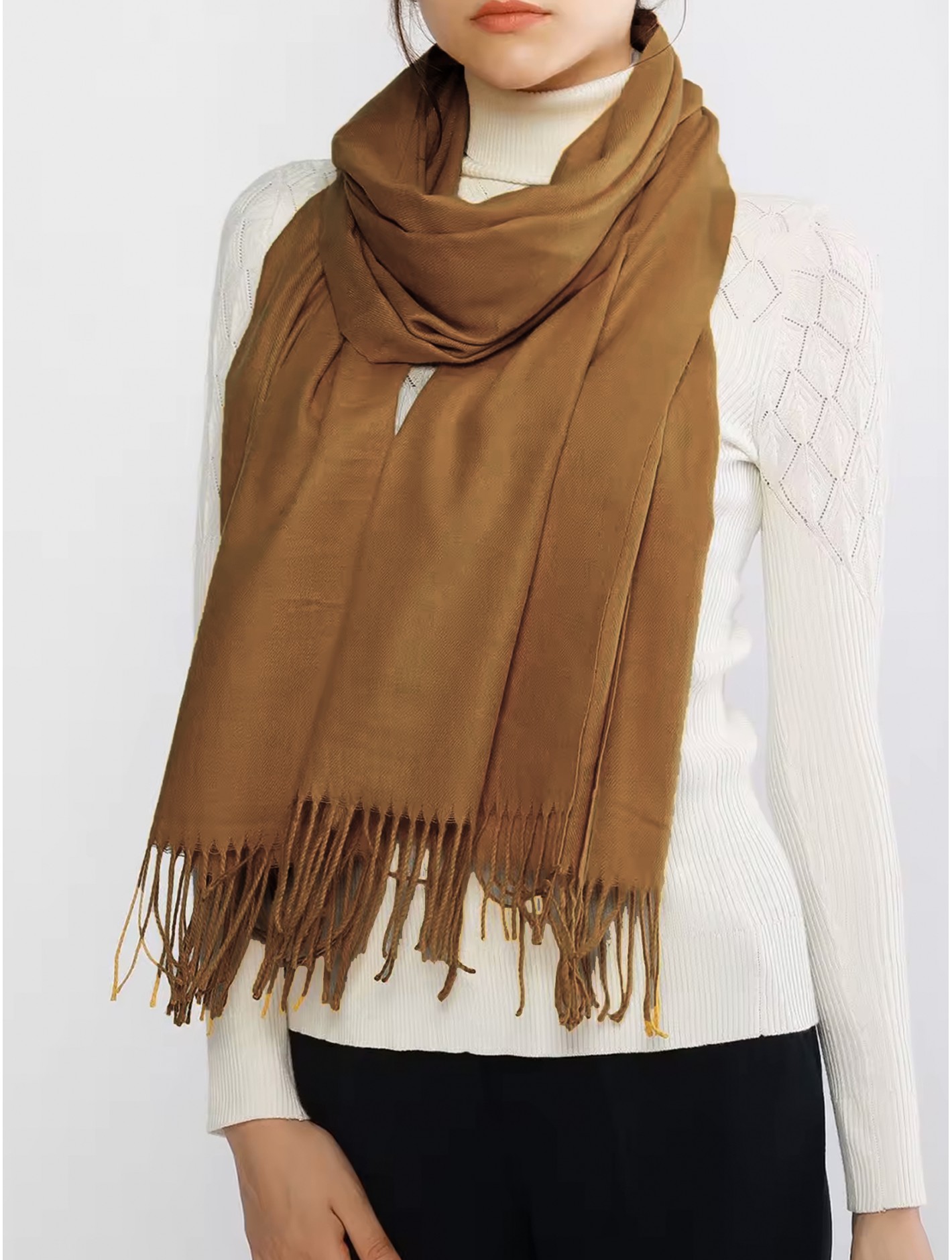 Wrap yourself in timeless style with this Solid Color Shawl Scarf featuring soft tassel accents. Lightweight yet cozy, this versatile accessory can be worn as a scarf, wrap, or shawl, adding a touch of elegance to any outfit. The classic solid color makes it easy to pair with everything in your wardrobe, while the tassels bring a hint of texture and movement. Perfect for layering in any season. Minimum 2 pcs.