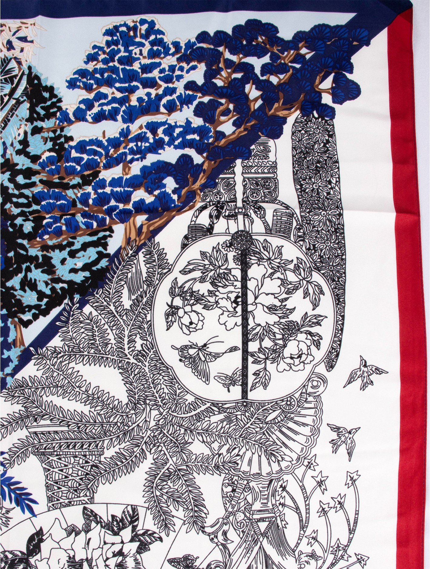 Silk Feeling Scarf W/ Spring Themed Pattern