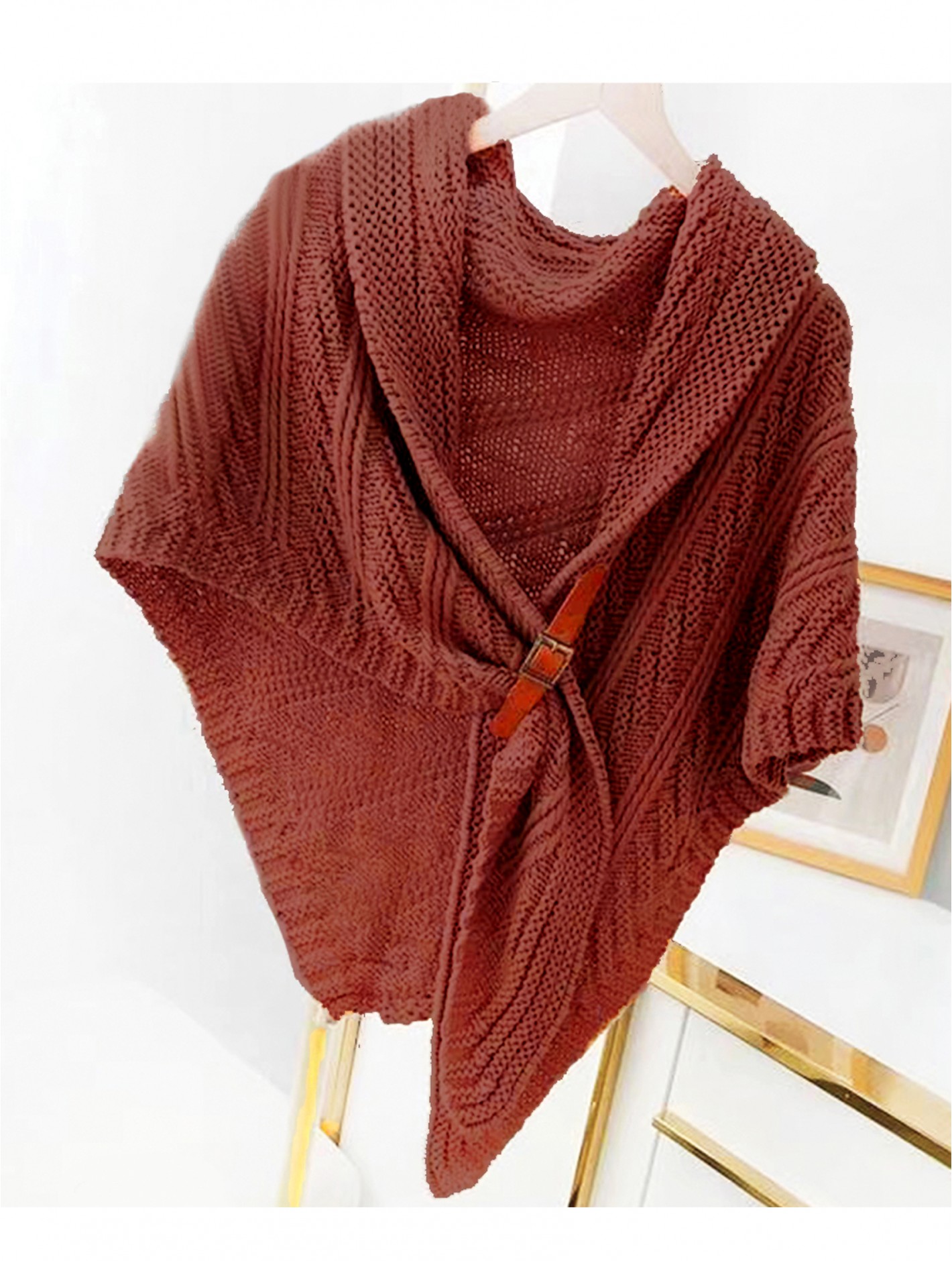 - Description: Knitted cape with buckle detailing can be worn as a scarf or as a cape. Made with premium material, super soft and breathable. Wear this fashionable piece to walk with elegance and confidence during the cooler seasons. Minimum 2 Pcs.