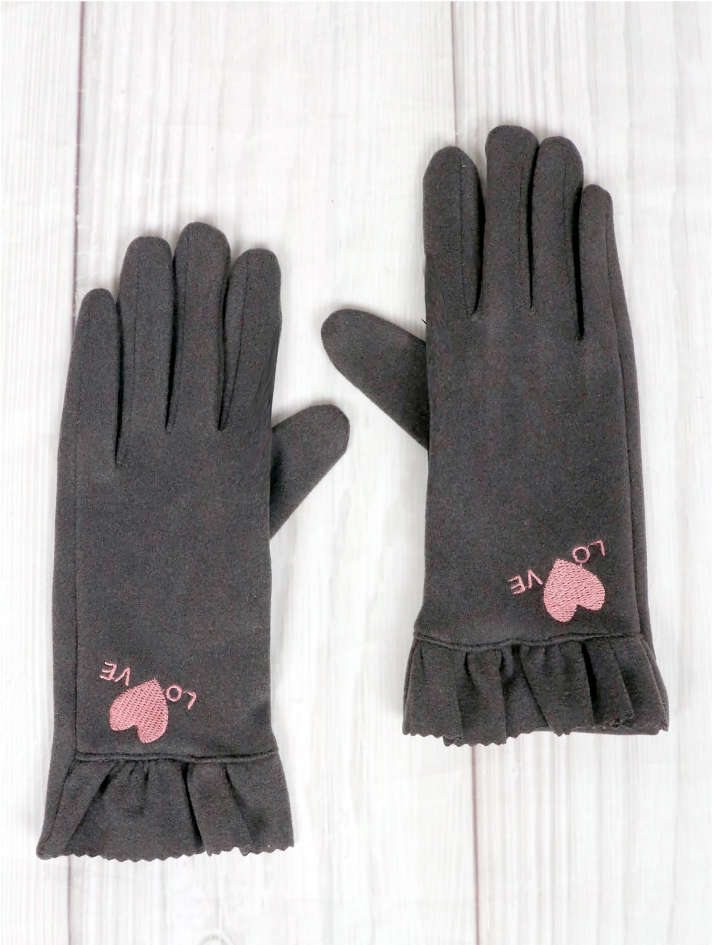 Heart Love Touch Screen Glove w/ Pleated Trims