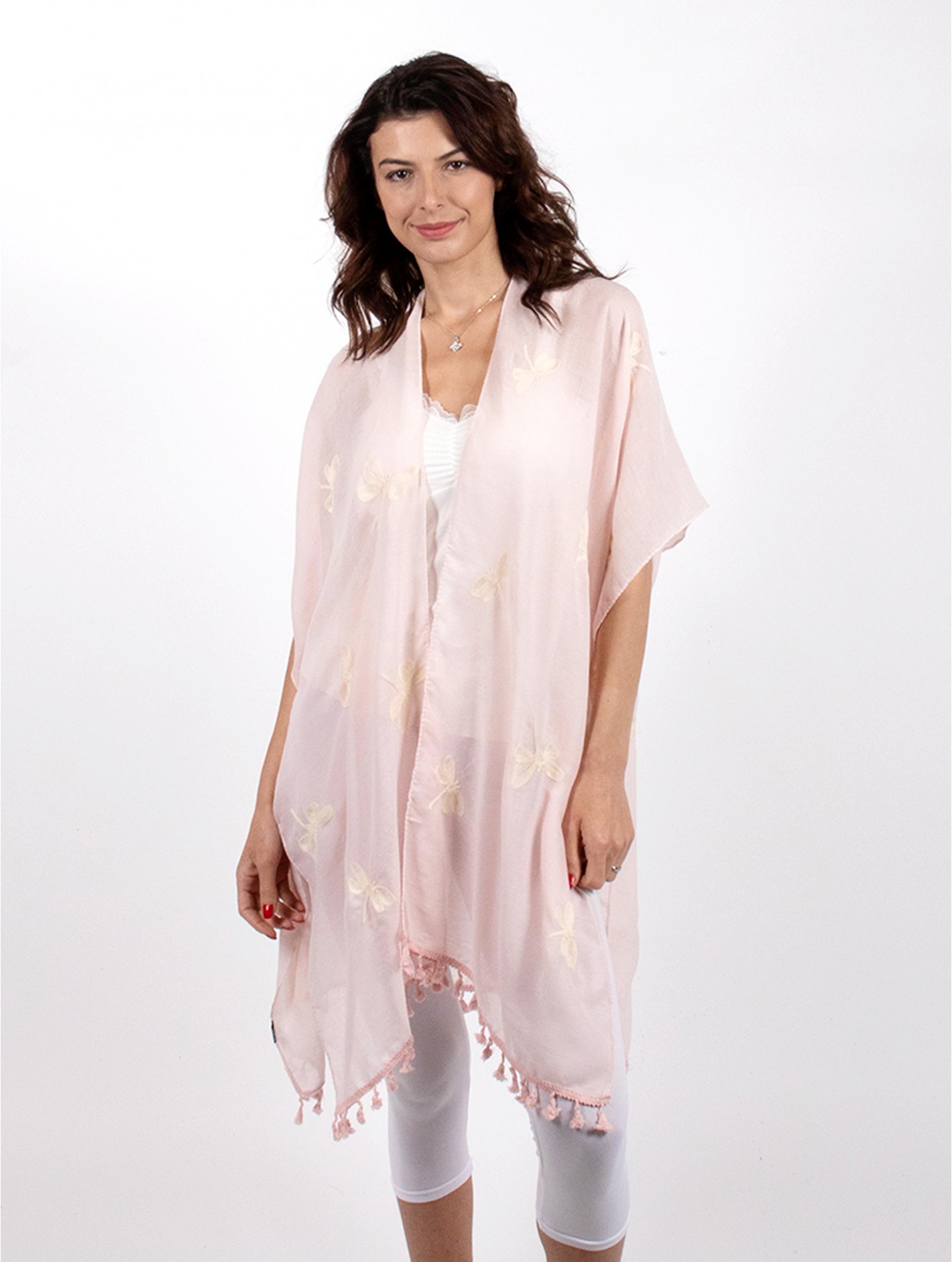 Unleash your free-spirited style with the Oversized Dragonfly Kimono with Tassels. This flowing kimono features enchanting stitched dragonflies that effortlessly blends nature-inspired beauty with bold fashion. The oversized silhouette drapes gracefully, providing a relaxed fit that moves with you, while the playful tassels at the hem add a fun, bohemian touch. Crafted from lightweight, breathable fabric, this kimono is perfect for layering over your favorite outfits, whether you're lounging by the pool, out for a day of shopping, or looking to elevate your evening look. Min 2 pcs