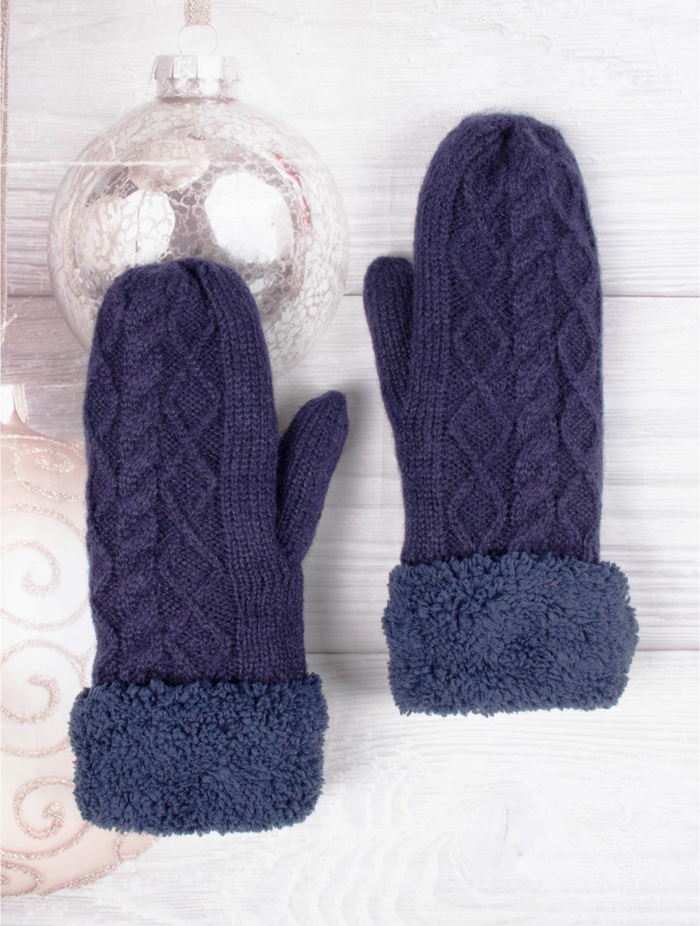 Fashion Cable Knitted Mittens with Plush Cuffs