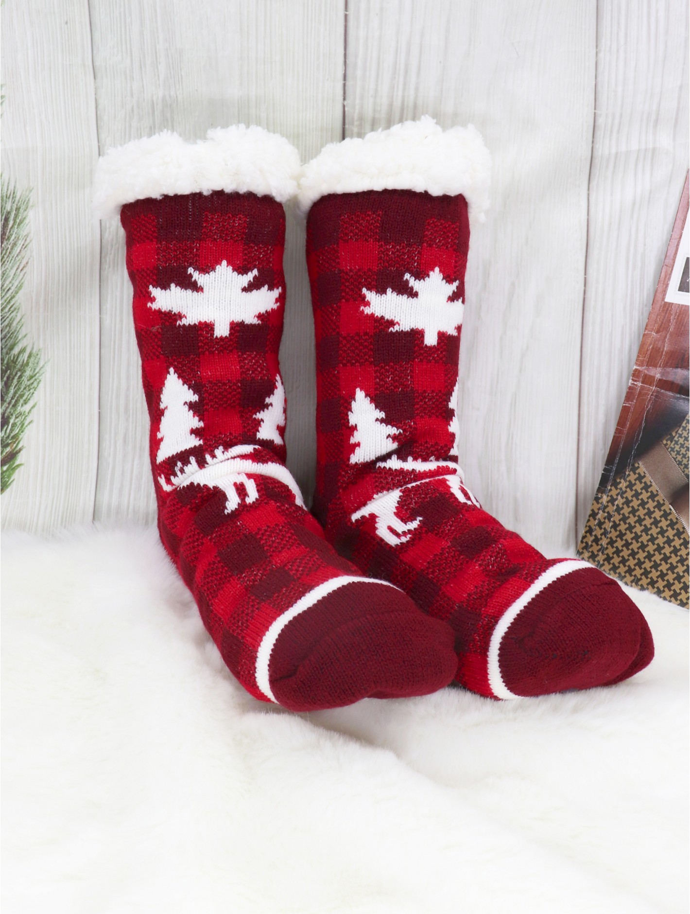 Tags: Reindeer Theme Plaid Indoor Anti-Skid Slipper Socks