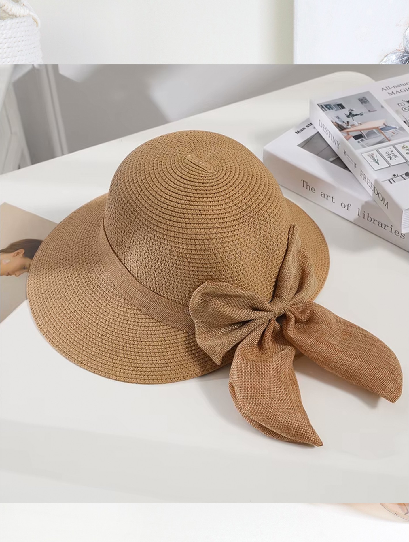 - Description: Min 2pcs. Wide Brim Summer Hat W/ Bow. Adjustable to fit a variety of head sizes. Color: CRM