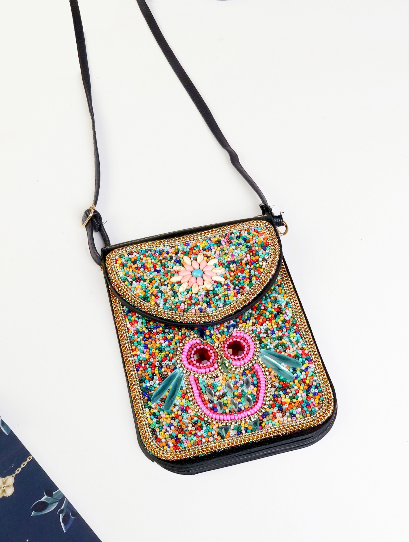 Hand-made Beaded Faux Leather Mini Purse with strap and multi-compartments. Minimum 2 pcs.
