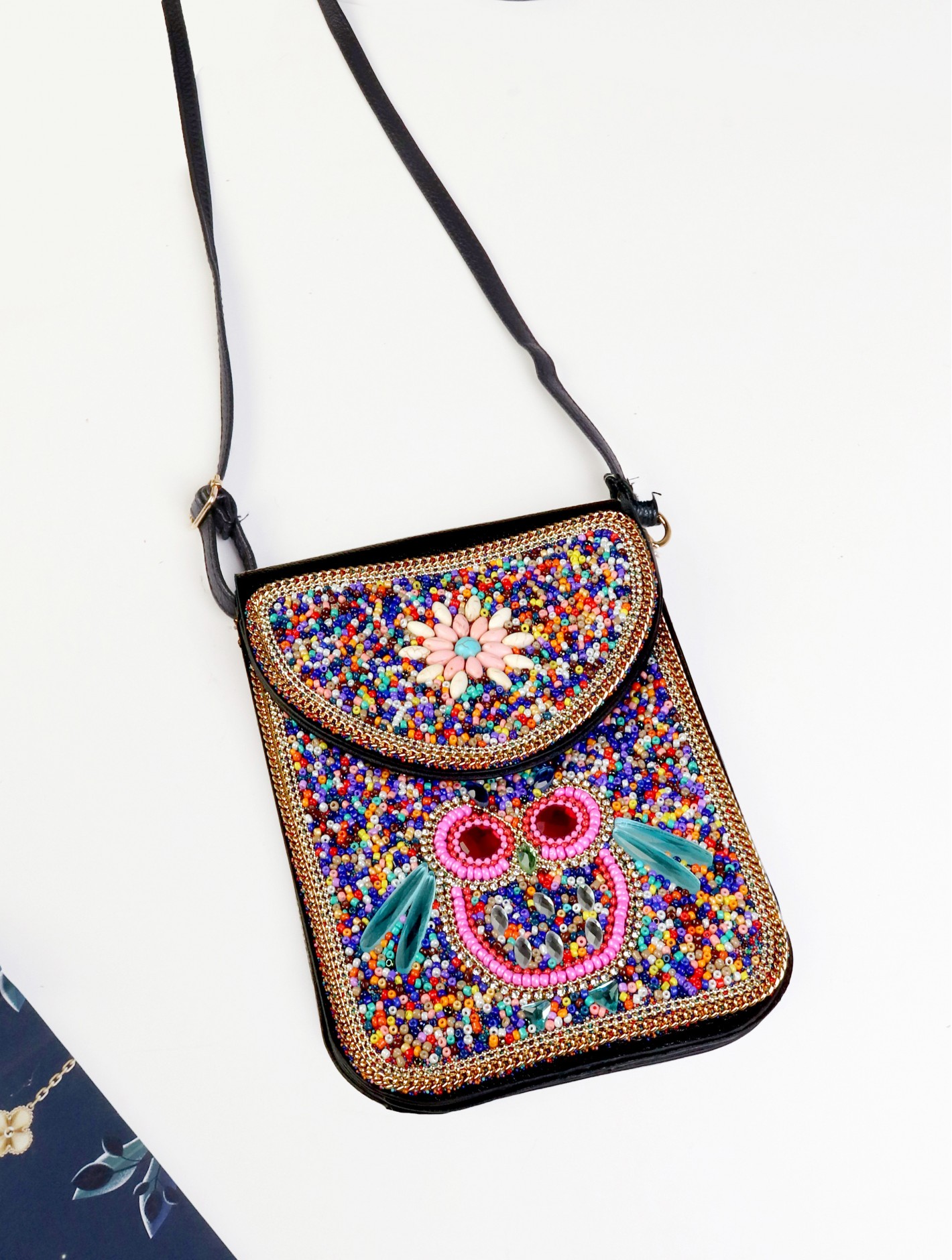 Tags: Hand-made Beaded Faux Leather Mini Purse