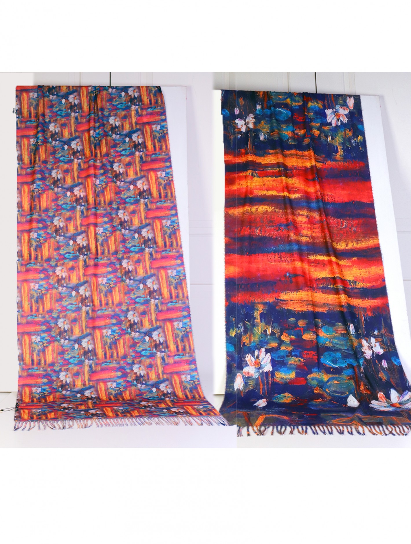 Double-sided Oil painting design fashion Scarf with tassels. Two different paintings to suit differe..