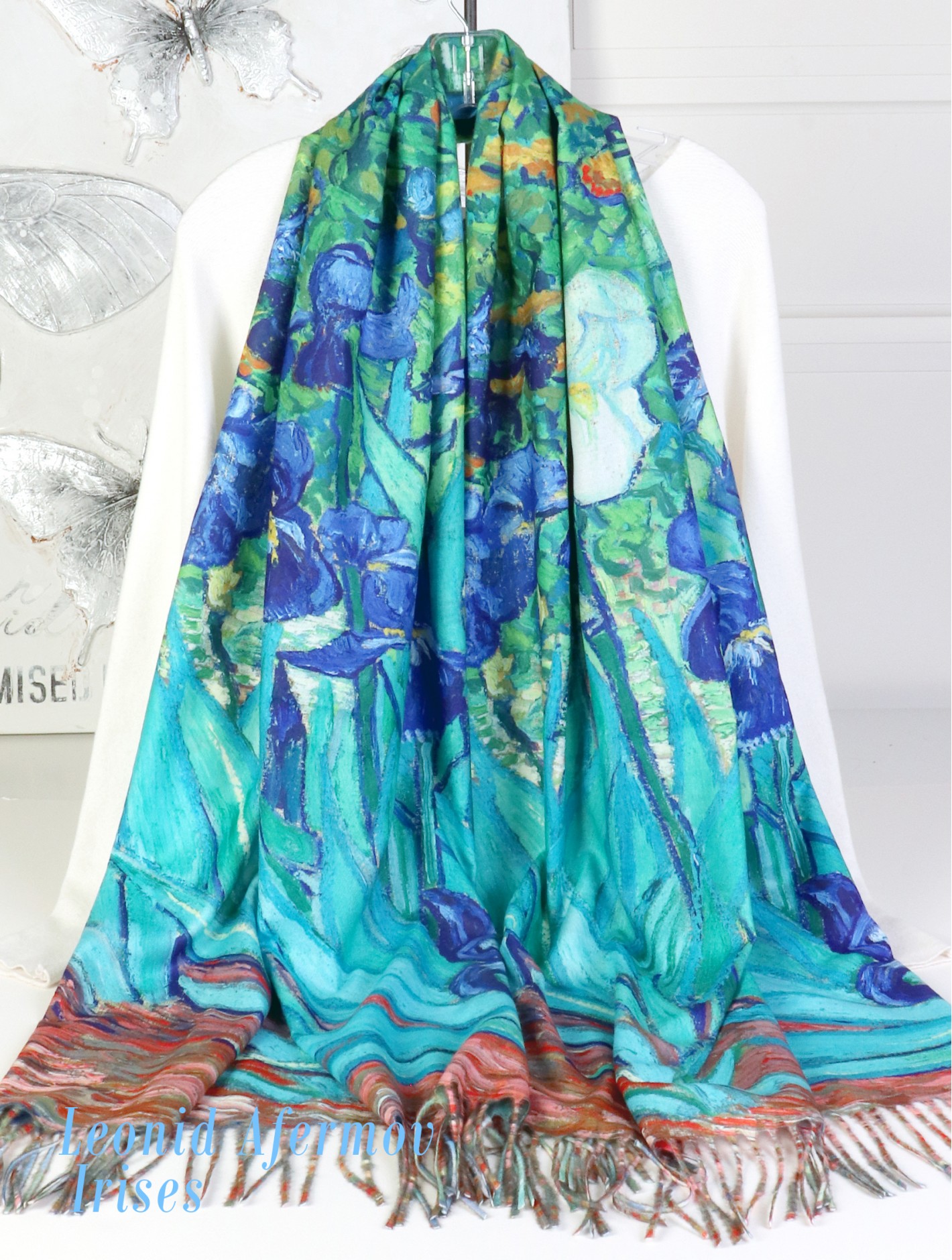 Double-sided Oil painting design fashion Scarf with tassels. Two different paintings to suit differe..
