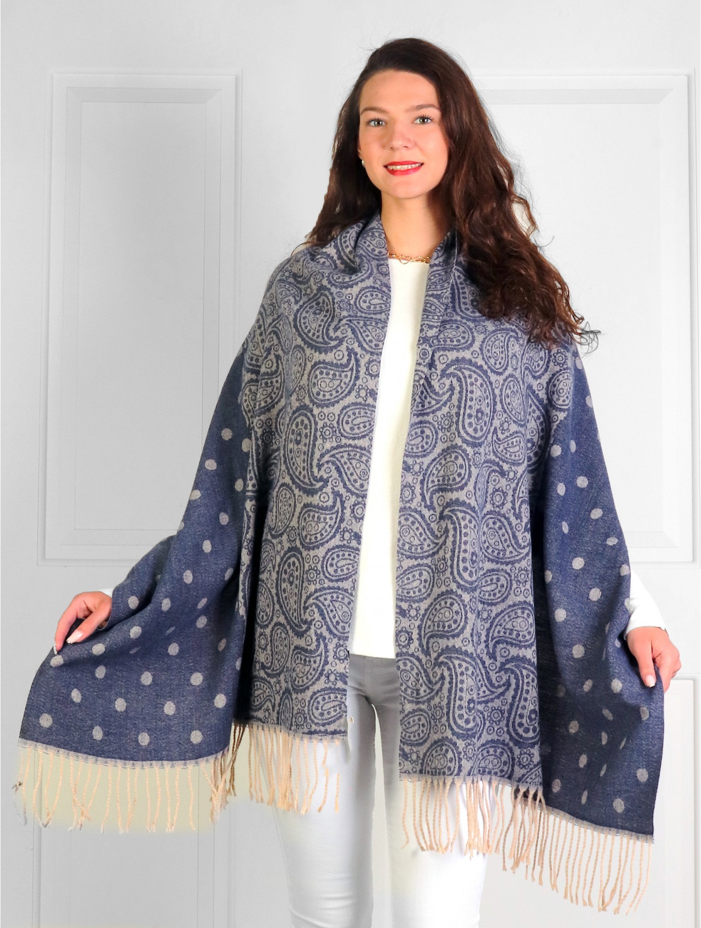 Tags: Cashmere Feeling Paisley & Polka-Dot Scarf with Fringes