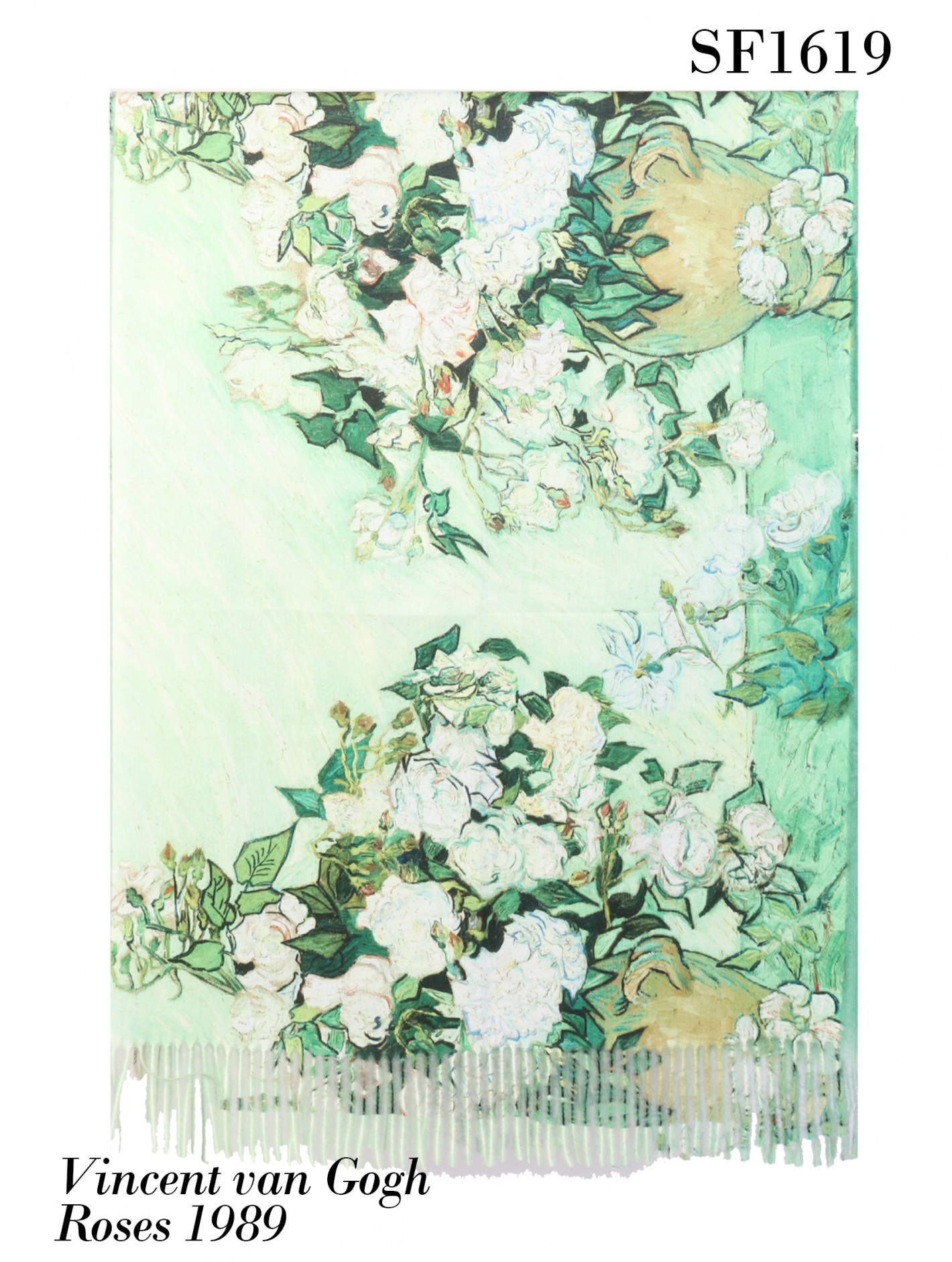Double-sided Oil painting design fashion Scarf with tassels. Two different paintings to suit differe..