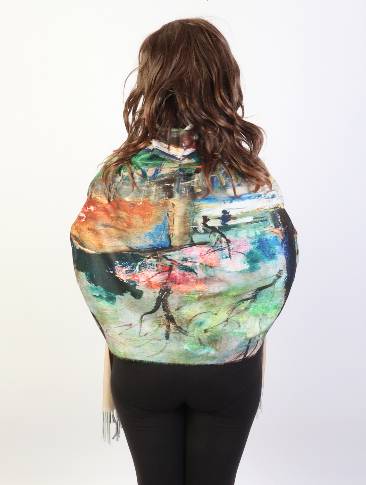 Oil painting design fashion Scarf with tassels. Soft touch feeling, great for any spring and summery..